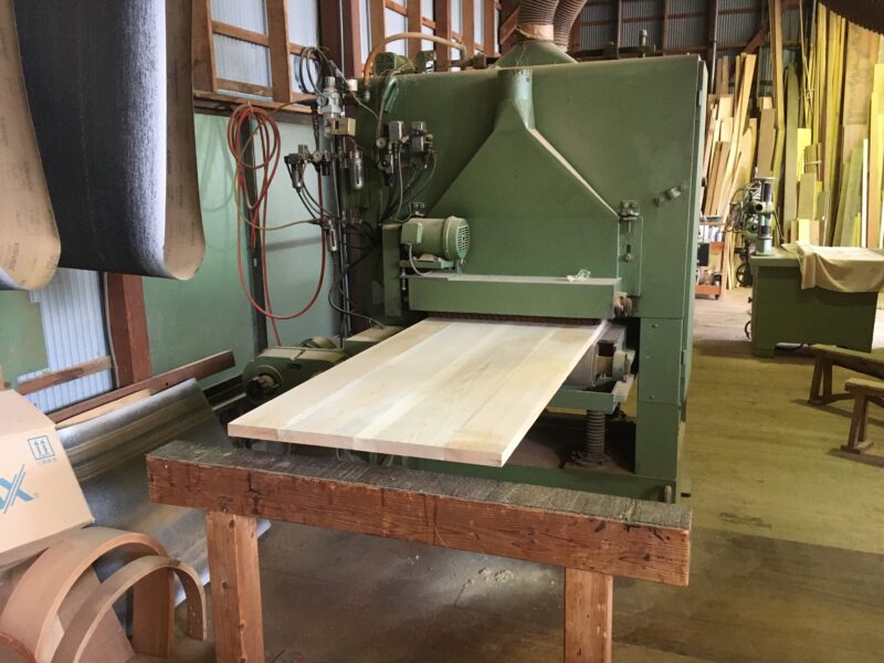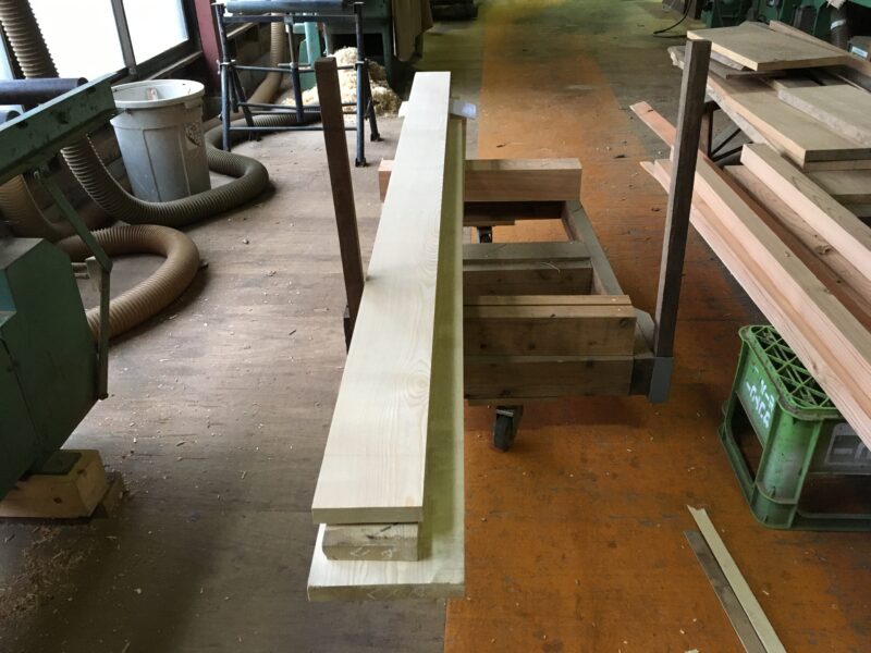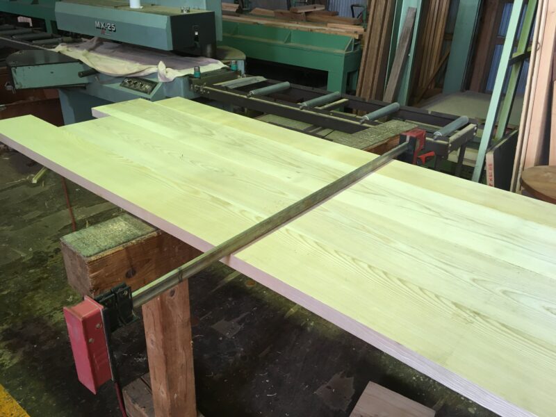 今日は先日木取りして4枚のセンの木を巾ハギ加工をしました。そして表面仕上げまでの加工です。